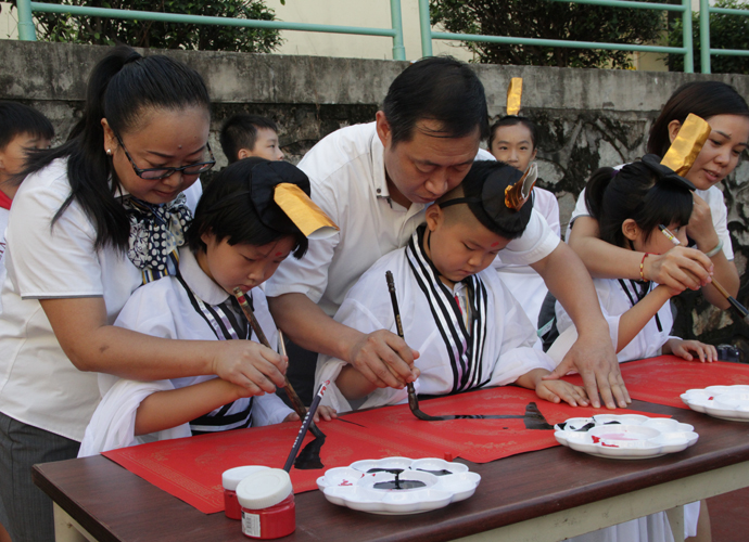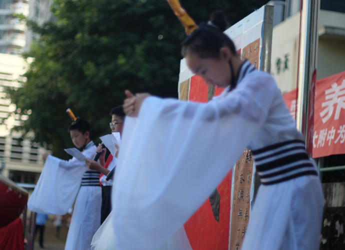 继入学仪式后,小学部精心准备了一场传统“开笔礼”作为独特的开学典礼。典礼仪式在9月12日举行,主题为 “开蒙养正 为明启航”,希望孩子们在中国传统文化的浸润中开始了人生的第一课,他们在感受传统文化洗礼的同时,也身体力行国学中的“崇德立志,仁爱处事”之道。