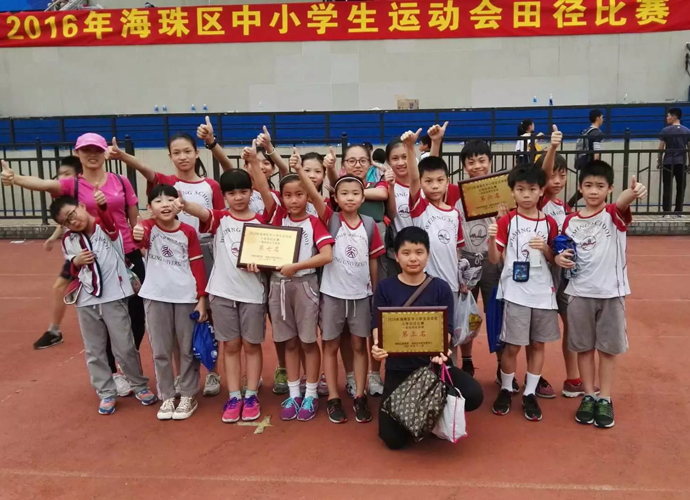 2016年11月21日,2016年海珠区中小学生田径运动会在宝岗体育场落下帷幕。来自海珠区一类组别学校600多名运动员参加了九个大项的角逐,我校小学部派出了16名男女运动员参加了七个大项的比赛取得佳绩。