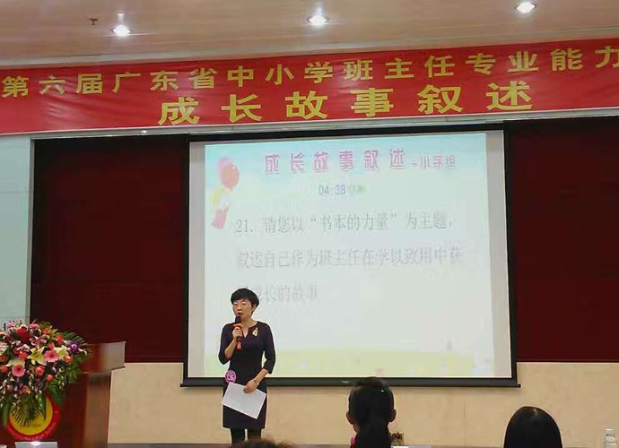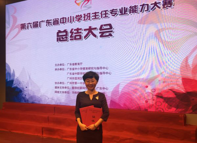 自今年5月起,小学部优秀班主任贺光艳老师参加海珠区中小学班主任专业能力大赛就获一等奖第一名,6月份参加广州市中小学班主任专业能力大赛再获一等奖第一名,凭借实力作为广州市的四名优秀选手之一,代表小学组参加此次全省中小学班主任专业能力大赛的决赛。