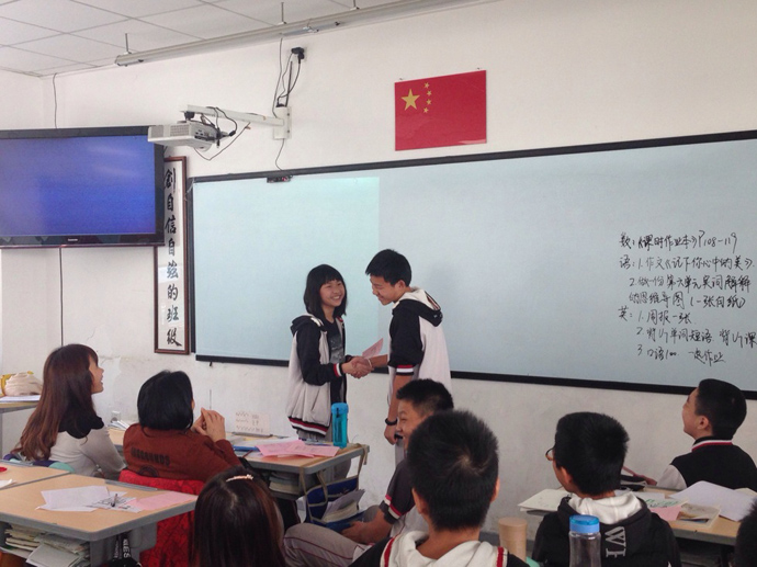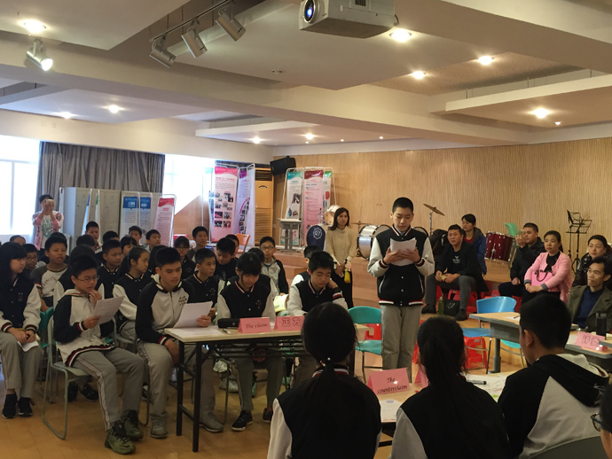 家长开放日第二部分是由宋冬盛老师主持的元培班英语辩论赛。本届英语辩论赛的主题是“I prefer to live in a the city.& I prefer to live in small town”,B班为正方,A班为反方,两个班各派出5名主辩手,同时全体同学为自由辩手。期中李相衡、林锐、易胜蓝、吴彦熙、许子旋、肖昌禹、陈启政、张泽强等同学都有出色表现。本次英语辩论赛,同学们从辩论观点、语法、词汇都比上一届辩论赛有很大的进步,出现多次高潮,辩论时间到了,双方辩手还不愿意结束。外教和钟校都对元培班的学生英语口语给予肯定和赞赏。