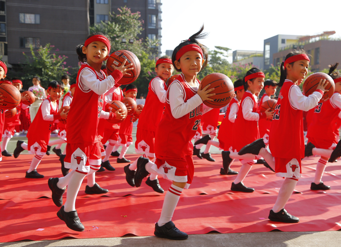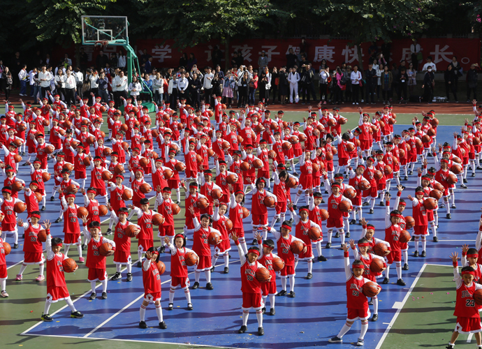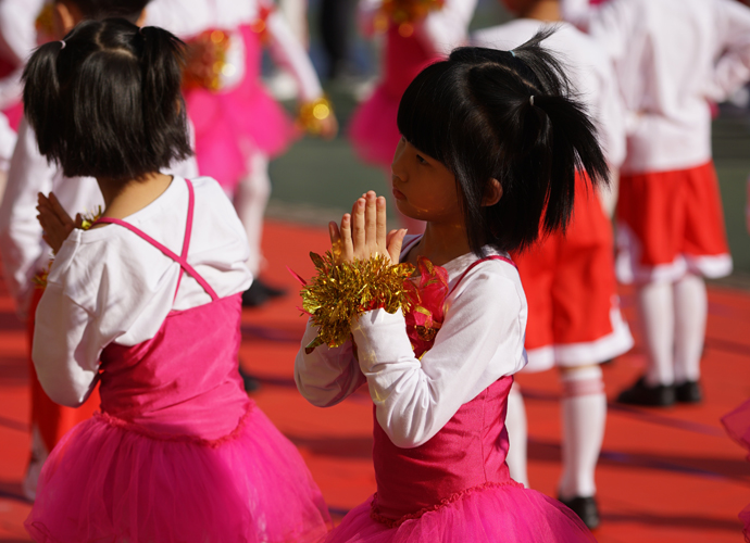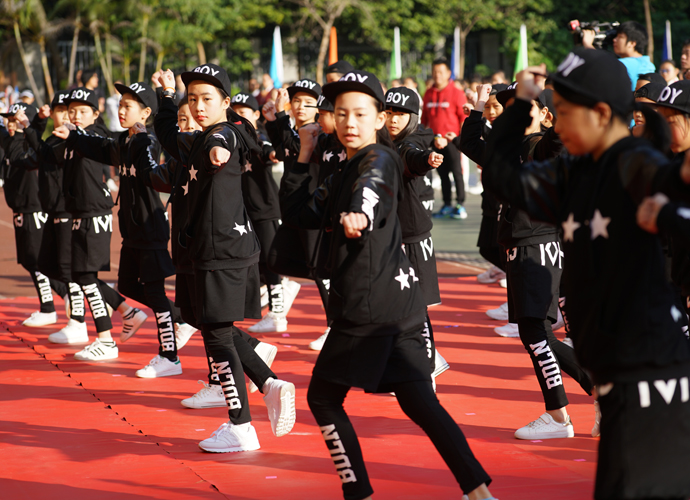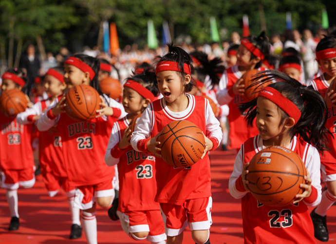 最心动:动感十足的韵律操后,一二年级的孩子们踩着欢快又整齐的节拍走向表演区,蹦蹦跳跳地表演起了由吴莲花老师编排的创意表演《为明萌宝篮球操》,令全场观众为之精彩而鼓掌欢呼。当音乐响起,一群群孩子把律动的身姿,俏皮的表情与篮球完美的结合,红色的小篮球不停地在孩子们手中跃动,划出一道道弧线,还不时听到球触地面的“啪啪”声,当看到他们可爱的动作和认真的表情,观众的心都被这些“篮球宝贝”萌化了。
