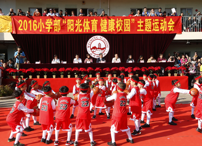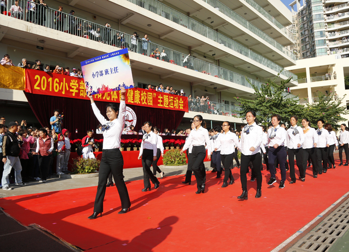 2016年12月7日,北大附中为明广州实验学校小学部“阳光体育、健康校园”主题运动会盛大开幕。开幕式上,有三十个方阵共一千八百多名师生学生进行了精彩的表演。为明广州学校王礼维校长、钟和军副校长、于晓东副校长、小学部龙旭主任陪同海珠区教育局何毅文副局长,及来自沙园街道、居委会、派出所的领导们、幼儿园的众多园长一起共同观看了精彩的开幕式表演,同时还有来自广州日报、南方都市报、信息时报和广东广播电视台新闻频道的媒体朋友们,他们也亲临现场拍摄,帮孩子们记录这精彩的时刻。