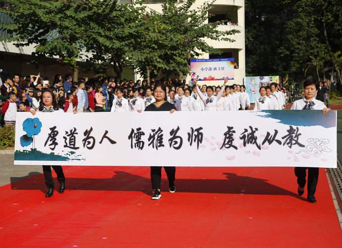 本届运动会的圆满成功举办,离不开学校领导的支持、老师们的精心设计以及家长们的积极配合,是为明广州学校家校合作完美的体现。王校长在致辞中说道,看完精彩的运动会开幕式入场式,他向大家说三个“感谢”:一是我们小学部的干部与老师们,精心策划,刻苦训练,为了孩子们的成长,累并快乐着!二是家长朋友的关心、参与,让孩子们身着节日盛装,充满自信,喜气洋洋!最后是教育局、街道派出所和社区对为明广州校一如既往地关心和支持,是他们让我们平安吉祥。与此同时,他还表扬了小学部全体师生在教师专业成长、学生素质培养、教育教学改革等方面均取得了可喜的成绩。师生获奖人次与级别创历史新高。最后他强调,体育的合作精神是努力学习与生活的动力,也是战胜困难的决心,更是创造未来美好生活的支撑力量!” 他希望,“厚重、大气、高远、时尚”的为明学子能在运动场上,顽强拼搏,超越自我,充分展示为明学子的风采与奋发进取的精神风貌。