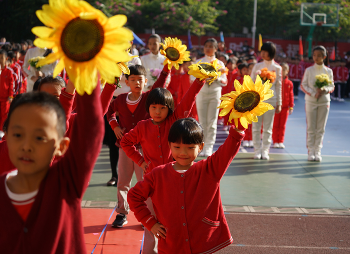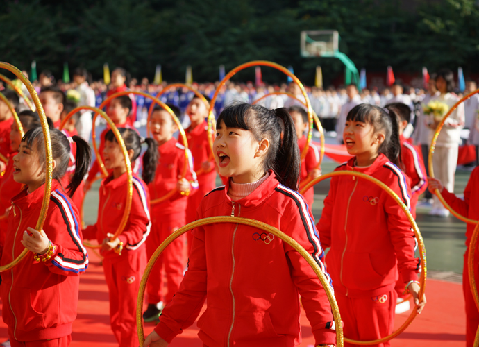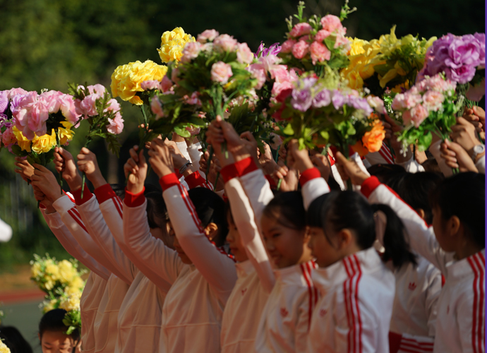 此次运动会回归了运动会的传统,从入场式各方阵的表演和团体操的展示,都是落实我校“回归教育本真,对孩子一生负责”教育理念的具体呈现。会场上,绚丽多彩的鲜花方阵点缀着校园的每个角落,迎风招展的彩旗方阵迎着太阳,五彩斑斓,霞光满天。
