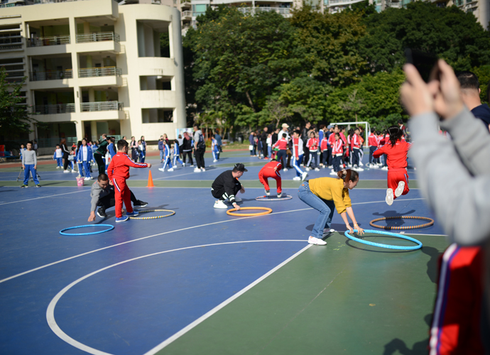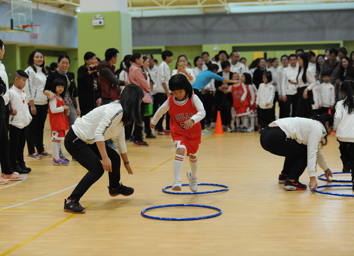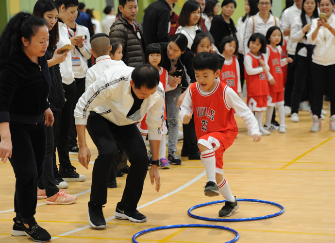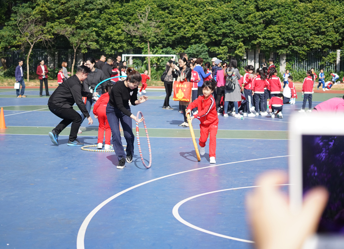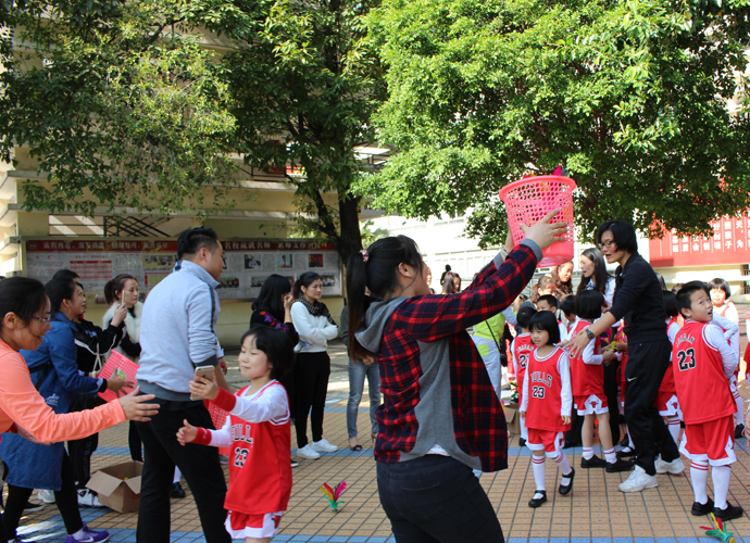 精彩的开幕式后,各年级亲子运动比赛在三个不同的运动场地激烈开展。每一个项目前,都排起了长长的队伍,参赛的孩子和家长是个个卯足了劲儿,比赛异常激烈,趣味呼啦圈、投准、拖球接力、踏石过河等形式新颖而又充满趣味的游戏,让每一位参与游戏的孩子和家长都紧密配合,其乐融融。而孩子和家长们的加油声、欢呼声、喝彩声,让操场和体育馆变成了欢乐的海洋、爱的海洋。