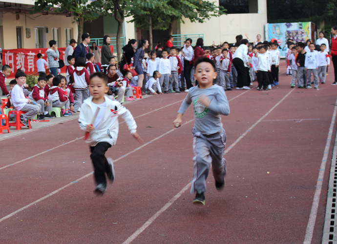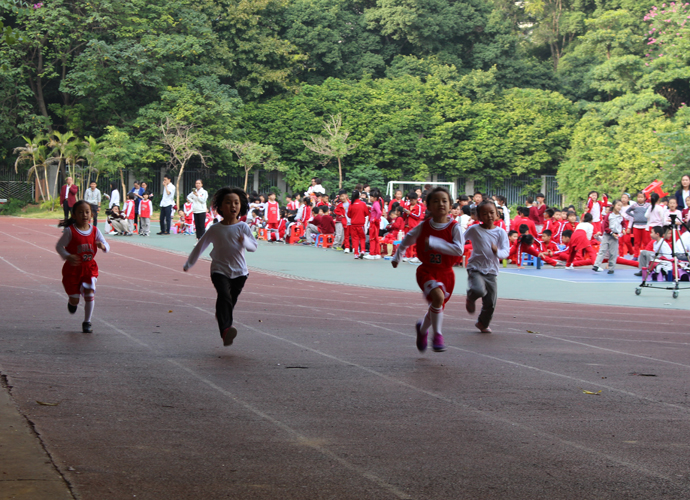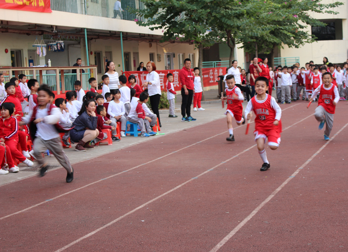 在随后一天半的比赛中,人气也依然高涨。长跑、短跑、跳绳、跳远、垒球等项目都吸引着同学们踊跃参与。百米飞人大战中角逐激烈,运动员们如支支出鞘穿云箭,你追我赶,争勇夺魁;400米项目,活力与坚毅相并,耐力与敏捷相融;垒球在空中划出的一道道优美的弧线,凝聚了学子的力量与期盼;跳远运动员翩然似鹰,,竞争十分激烈;运动员们一步步突破着自己的极限,这种永不言弃的坚持令人动容;最后进行的接力项目点燃了全场师生的激情,每一棒的交接传递的都是集体团结友爱的力量。孩子们个个都是“小刘翔”,随着发令员一声枪响,他们卯足了劲地朝前跑,那紧攥的拳头,憋红的小脸,无不传达着一个信息:“我要为班级争光!”比赛中,小选手面临的不仅是体力上的较量,更是心理、毅力的考验,所收获的远比取得成绩要丰富的多。