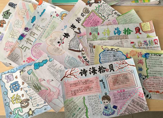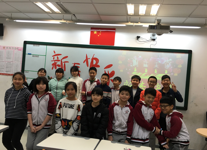 六年级统一在每一间教室里布置 “新春快乐”四个大字,浓浓的红字,形态丰满,洋溢着喜气,洋溢着快乐。师生们就在这浓郁的喜庆氛围里,互相祝福,分享海外游学感受,畅想未来的成功!