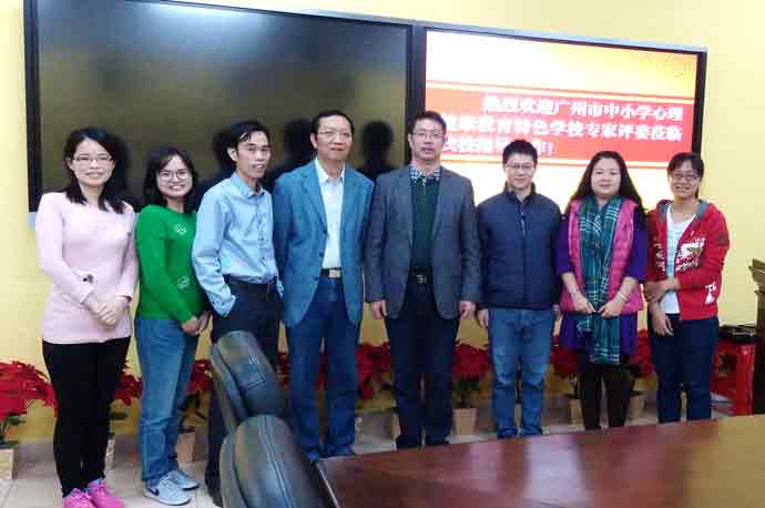 2016年12月1日,广州市中小学心理健康教育指导(培训)中心的专家组评委刘百里教授、曾琨玲老师、张豹博士一行三人莅临我校开展市级心理教育特色学校的实地评审。钟和军副校长代表我校从组织领导、条件保障、教育教学、科学发展四大方面对学校心理健康教育工作的经验和特色进行了精彩汇报。接着,专家组通过查阅材料、实地考察和师生访谈,对我校心理教育的常规工作和特色发展进行深入了解。最后,专家组对我校心理特色学校的创建工作给予反馈意见,认为我校心理健康教育的理念清晰、特色鲜明、组织机构完善、功能设施完备、管理制度明晰、开展形式多样,高度肯定了我校的心理健康教育工作,并鞭策我校在心理科研成果方面争取更大突破。