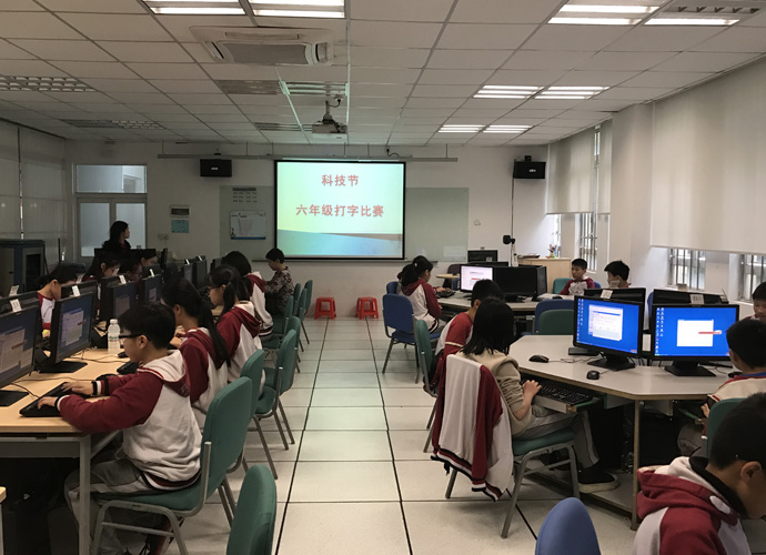 六年级“超级快手”打字比赛决赛3月9日中午在C202电脑室进行,他们都是班级初赛的优胜者,来到这个决赛的现场,势要为自己的班级争取荣誉。比赛一开始,教室里只听见手指和键盘碰撞的声音,宛如一首振奋人心的进行曲,选手们的眼睛紧紧盯着屏幕,生怕错过一个字符,直到比赛结束,孩子们才如释重负,急忙看看自己的成绩排在第几……这样的高手对决,让他们体验到天外有天,人外有人,在以后的学习中将会更加谦虚稳重。