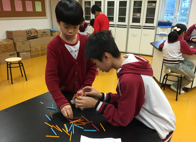 五年级设置的科技活动是“科技游园赛”,3月9日下午第八节课,小学科学实验室外聚集了五年各班的参赛选手和观赛的同学。游园赛由六部分组成:月亮不倒翁、大象平衡木、筷子叠叠乐、方块积木、鹅卵积木、爱心积木。这六部分主要是考验参赛选手的合作能力、协调能力和立体想象力。班级按抽签顺序进场比赛,场内12位选手专心比赛,场外观众呐喊声不断。在比赛现场,很多同学都表现出“拼搏到底”的精神,虽然项目难度很大,但是都不会轻易放弃,冷静思考,沉着应战。比赛定会有输赢,但是孩子们都非常享受竞赛的过程。