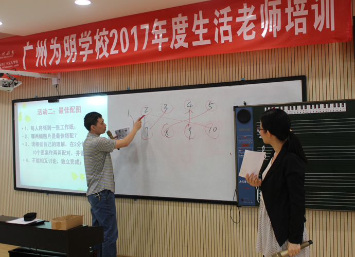 4月6日下午14:30,第二期中小学生活教师培训在C320举行,教师发展中心杜卉督学、小学生活部陈军主任、黄丽华主管出席了此次培训。本期培训主题为“我与团队,携手共进”,由教科研中心的心理教师团队共同策划,以体验式活动为主,为生活老师们创设团队互动、交流的平台,促进老师们在活动中体验,在体验中成长!