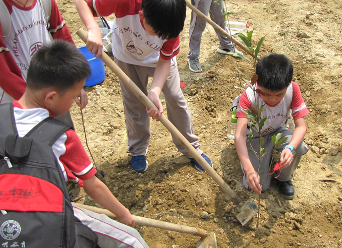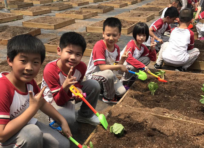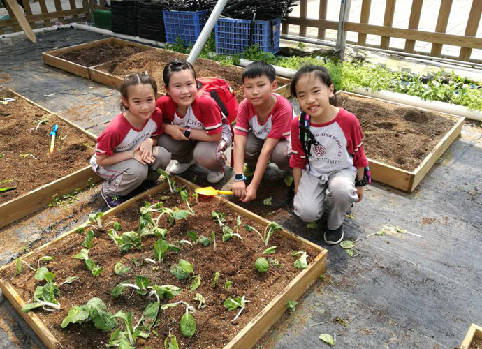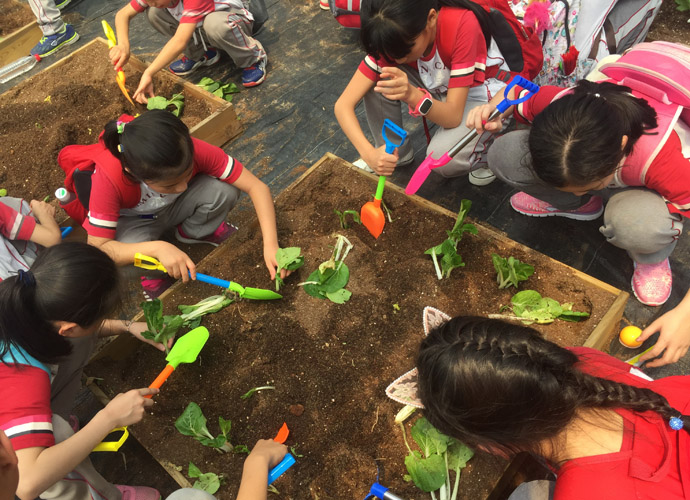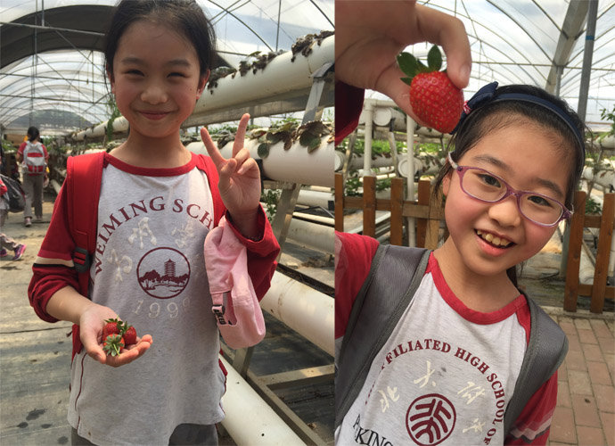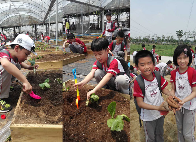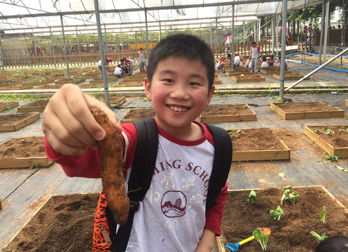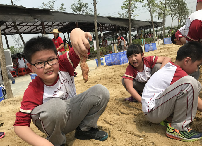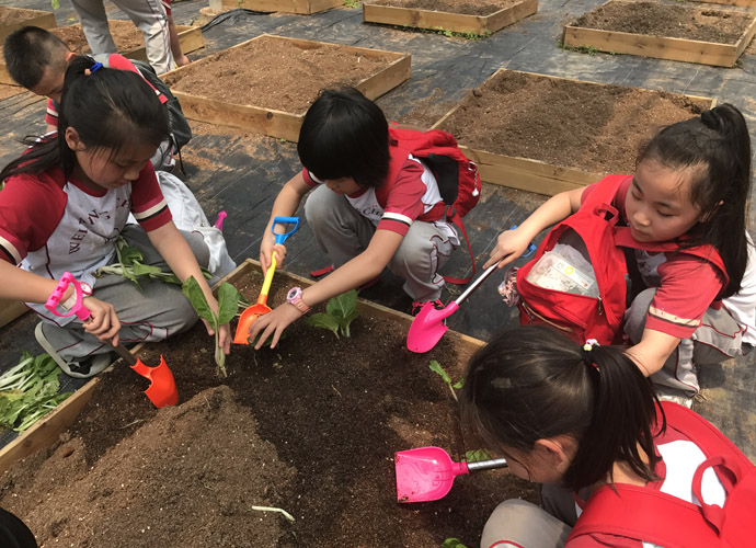 在相邻的蔬菜种植区,一二年级的孩子摇身一变“小菜农”,开始体验种菜的乐趣。在老师们和导游的帮助下,孩子们挖出了一个又一个小坑,把菜苗放进去后,又将土反复地推平,生怕自己种的菜苗倒了。孩子们体会了农民伯伯的辛苦,深刻地明白了“谁知盘中餐,粒粒皆辛苦”的深刻含义。