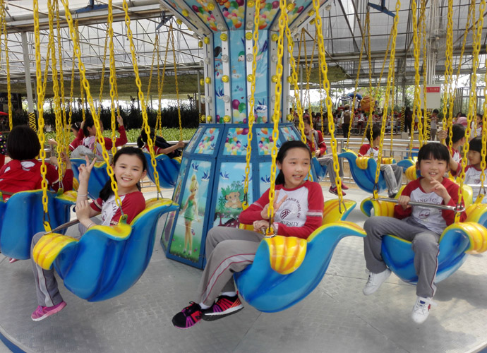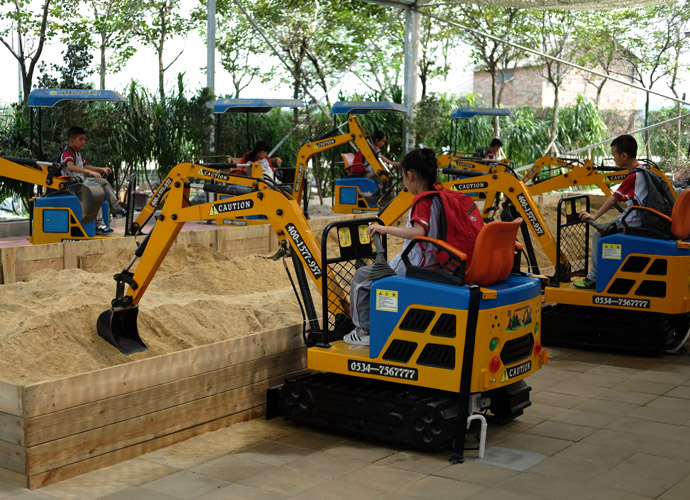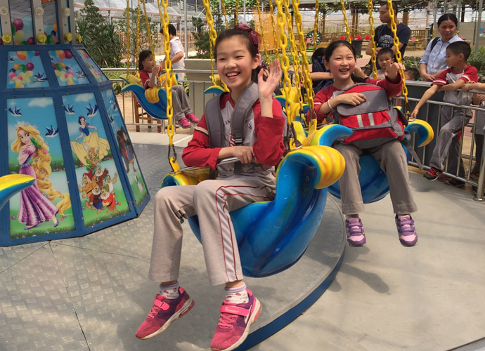 小组活动结束后,孩子们畅游丰华园,玩起了掷飞碟、旋转飞椅、泡泡池、5D小电影、开挖掘机等机动游戏,园区欢乐无限,欢笑声一浪接一浪,不绝于耳。