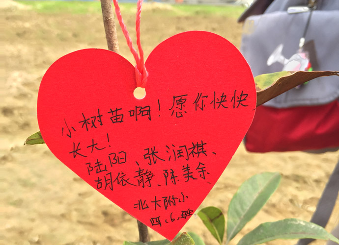 “这次春游结束,我最大的愿望就是我们小组种的树能健康成长,就像我们的友谊一样地久天长!”