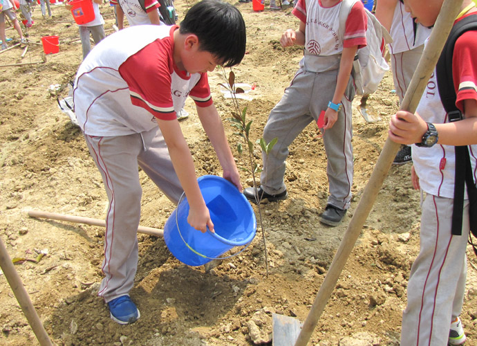 “小树苗,希望你能白杨树一样茁壮成长!”“小树苗啊,你快快长大!”这是孩子们对小树苗的心愿。在这春机盎然的季节了,当然少不了体验一把种植的乐趣了。从挖坑、栽种到浇水全都有孩子们一手包办,不仅享受个中的乐趣,更让孩子们懂得了要爱护花草树木的重要性。