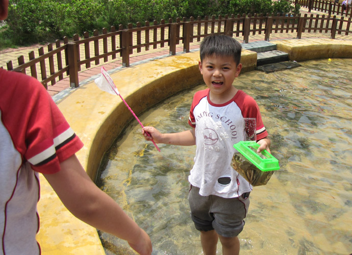 “我最开心的是这次春游我喂了好多动物, 比如:黄牛、黑山羊、孔雀、鹅等,特别是孔雀开屏的那一瞬间,非常美丽。”
