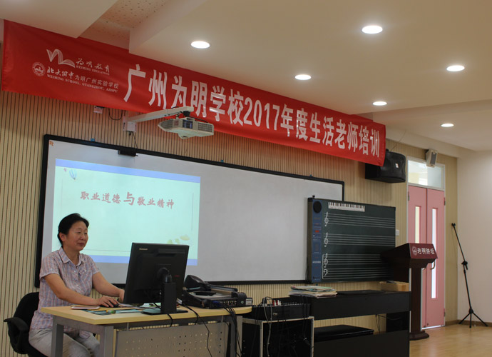 然后进入第二模块—-关于敬业的报告。什么叫“敬业”?为什么“敬业”?如何“敬业”?一环扣一环,直插听课教师的灵魂深处。既有敬业指数自测、又有职场新变化、还有企业用人策略……。特别强调了为明学校“领航中国民办基础教育”的宏伟蓝图下,对生活教师的个人要求。