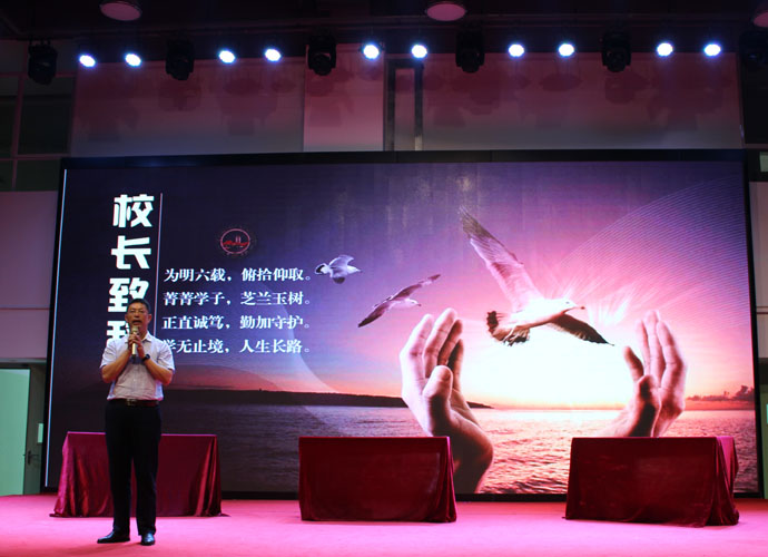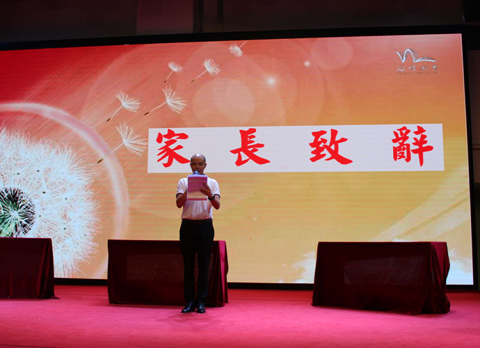 王校长的致辞,情深意长。首先,他倡导所有学子要懂得“感恩”,感恩父母的养育,感恩老师的教育,感恩同学的陪伴,感恩所有教职员工的热情服务,感恩身边每一个给予自己帮助的人。接着,他鼓励学生能学会包容,要有虚怀若谷、兼容并包的胸怀和气度。同时,王校长满含深情地勉励学子们,无论走到哪里,都要记住 “厚德明理,求知进取”的校训,弘扬“敬天爱人,兼济天下”的为明精神。最后,他祝愿所有学子前程似锦,宏图大展!