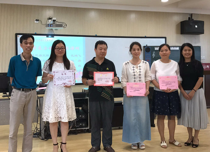 大会上,詹主任分别对优秀教学设计、优秀课例、教学新秀、优秀研课团队、&区市优秀课例名单进行宣读,由钟校长和龙主任颁奖表彰,对本次发言的五位教师颁发培训证书。老师们的内心和手里捧着的证书一样火热,满满的收获再一次激励了教师们笃定前行!