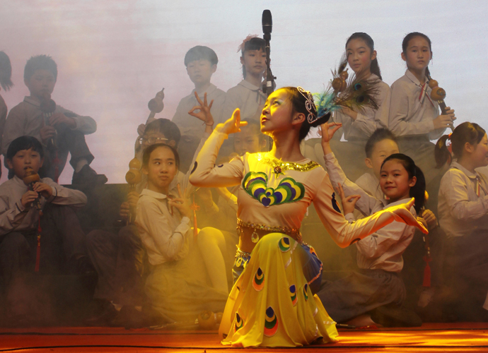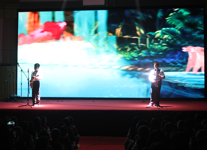 本场音乐会由小组唱、大合唱、小提琴、萨克斯、葫芦丝等多种表演形式组成,充分展示了孩子们学习的丰硕成果。下午四点,伴着优美动听的童谣,小合唱《小白船》拉开了本次音乐会的序幕。六小萌娃带来的表演唱《乌鸦与狐狸》,童声童气,可爱至极。六年级小组唱《赋得古原草送别》,唱出了即将毕业,对同学们的不舍之情。根据学生的认知,音乐组分层教学、层层推进,向观众展现了悦耳动听的合唱《嘀哩嘀哩》、《村居》、《七步诗》和《我的祖国》。获奖作品葫芦丝齐奏《月光下的凤尾竹》用明快的节奏营造了喜庆的气氛;萨克斯表演《今夜是否感到恩爱》吹出了别有的温情与爱意。小提琴演奏的中外名曲《瑶族舞曲》、《我们多么幸福+G大调小步舞曲》和《卡农》,经过同学们娴熟地演奏,迸发出最动人的旋律,在独特的意境中带给观众美的享受。