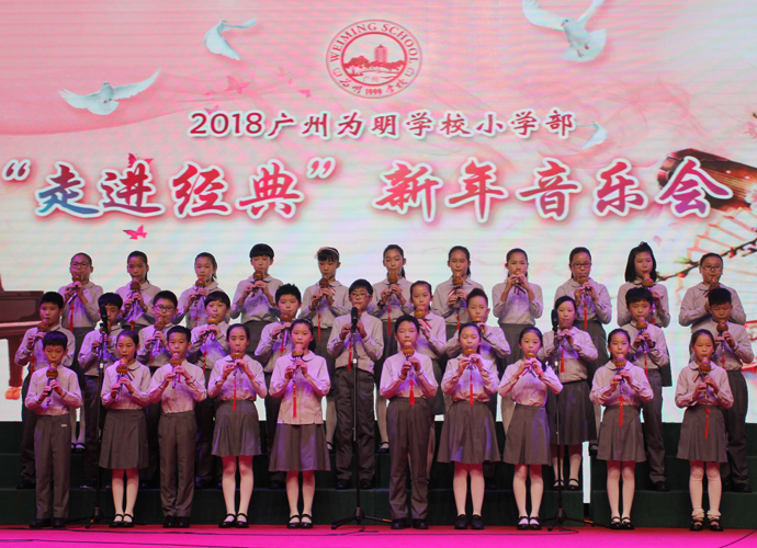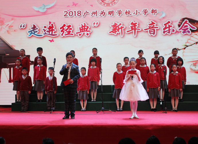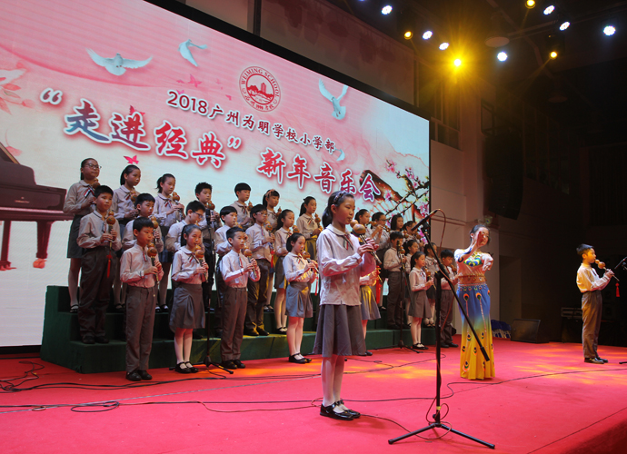 12月28日,广州为明学校小学部2018“走进经典”新年音乐会精彩上演。此次新年音乐会是合唱、器乐专场新年音乐会,演出的曲目中,不仅有经典童谣演唱、歌颂祖国的大合唱,还有国内外经典曲目演奏。为了让全体孩子能更好的享受这场音乐盛宴,学校特升级了灯光音响设备,采用全程直播技术。音乐会上,孩子们以饱满的热情、精湛的技艺,在新年来临之际,为新年倾情演奏,向小学部全体师生及家长呈现了一场高雅艺术的视听盛宴。