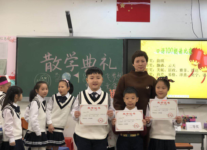 二年级各班散学礼均以“放飞梦想,唱响童年”主题,提前为家长们准备了一份丰盛新年大餐。活动前孩子们根据自己的特长自行组合,利用课余时间自己排练,小提琴、跆拳道、尤克里里、钢片琴、街舞、民族舞、现场书法、千字文背诵、讲故事、拉丁舞、钢琴等等,除校内学习的特长外,我们惊奇地发现,原来孩子们还有很多深藏不露的本领。汇演最后的曲目是全班的大合唱,当孩子们唱响“温暖的家”的时候,很多家长都感动滴落泪了。会后家长握着老师的手。感激的话语接踵而至,朋友圈上感恩频频,尽情地享受着孩子的成长带给他们的幸福。