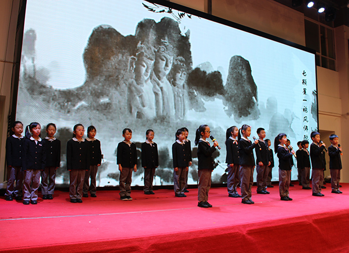 台上表演的津津有味,台下欣赏的如痴如醉!这就是我们选择在开学典礼上以此激发学生诵读经典诗词的初衷!