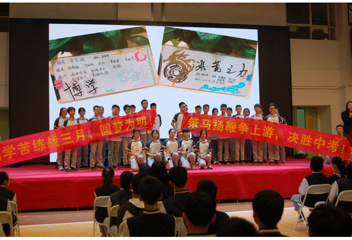 再搏百日,班班迎考氛围浓。本次誓师大会学部统一部署,年级精心设计、形式新颖、气氛热烈,全体师生群情激昂,真正体现了名校学子敢于挑战自我、追求卓越的勇气和担当。本次誓师大会,增强了师生们备战中考的意识,激发了学生备战中考的斗志,促进了初三学生间的互动交流,营造了浓厚的备战中考的氛围,点燃了初三全体师生的激情,坚定了备考的信心,在全体师生的共同努力下,相信今年的六月定会收获不一样的精彩!