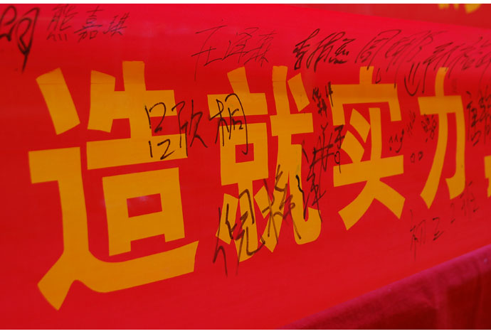 会后,各班结合百日誓师的主题,对各自班级进行了班级冲刺目标调整和环境布置,使会议的成果进一步扩大并落实。