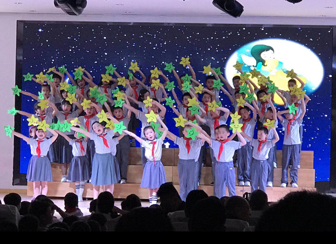1班的《星星的心》唱出天空就像爱的大家庭,好多星星都住在一起 。夜晚来临点亮了自己,默默照着孩子们的心 。