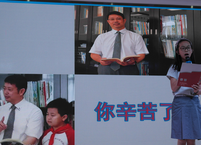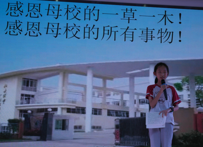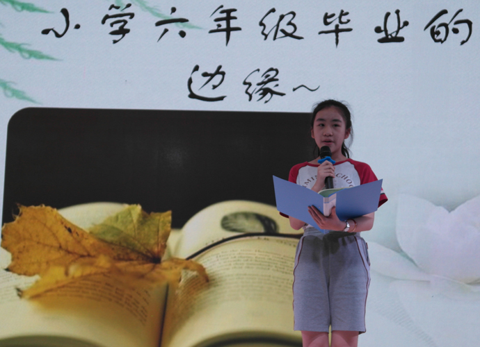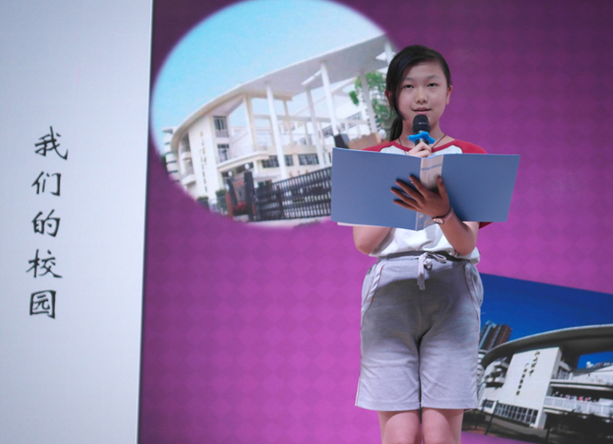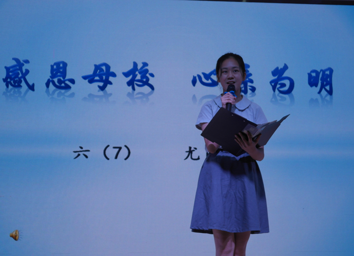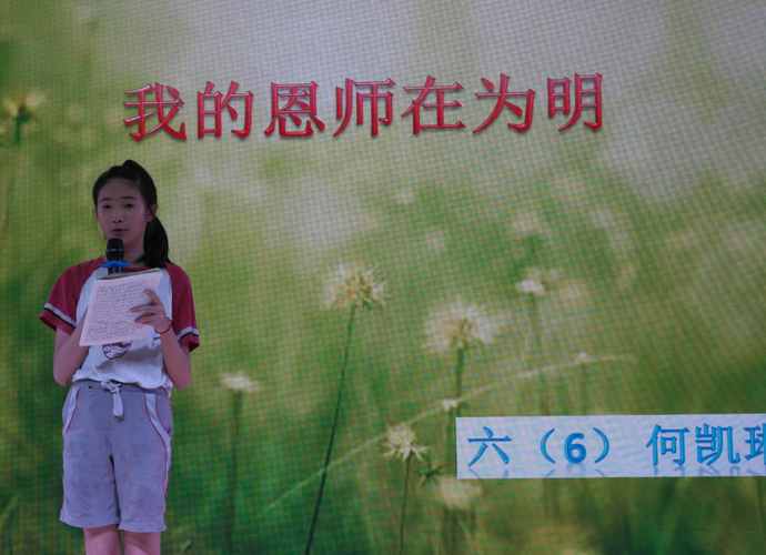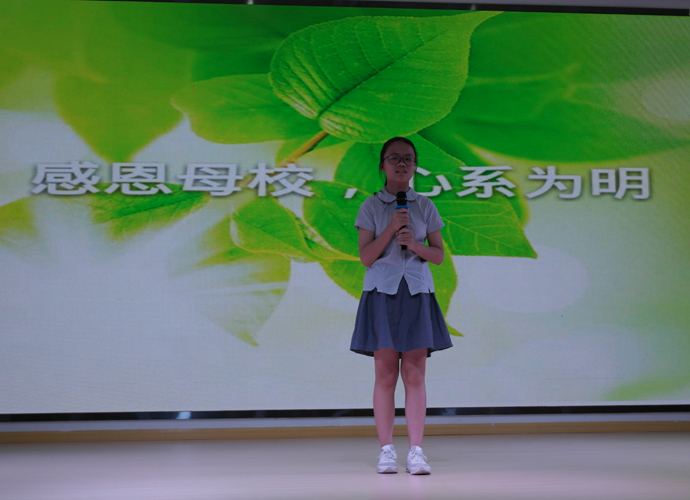 决赛现场,来自各班级的30名优秀选手在台上尽显风采,他们用精神饱满、慷慨激昂的演讲倾诉着对为明广州学校的感激和热爱之情。丰富的语言,浓浓的情谊,6班的袁海倚同学用她的方式讲述着在为明母校求知生活的美好。一曲悠扬的钢琴配乐,把我们带到了7班黄希晴同学动人的演讲中,随后4班张靖雯更是别具一格地在演讲中穿插着一张张照片,将成长串成一片记忆的画面。“今天,我以为明为荣;明天,为明以我为傲!”5班胡亦琳用她的微笑和真诚演绎着平淡但决不平凡的元培生活。蔡园儿同学的动情讲述,应海程同学的沉稳坚定,吴锦泓同学的娓娓道来,每个人都通过这次比赛抒发自己对母校深深的感激依恋之情,展现自己优异的口语表达能力。“老师,我不想毕业!”“老师帮助我养成了开朗的性格”“仅仅一学期,足以让我爱上了你,为明!”“大榕树上多了六道年轮,我们多了六年美好的回忆”……一声声来自心灵深处的呼唤,一段段文辞优美的描述,一张张满怀深情记忆的幻灯片,在短短几分钟的演讲里感染着,感动着我们每一个人,把现场气氛一次又一次推向高潮,在场的观众和评委共享着这一视听盛宴。