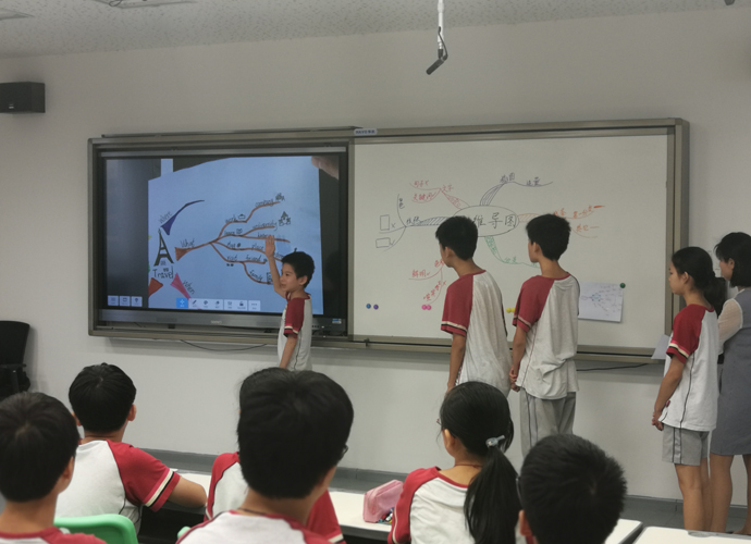 陈国斌老师的数学课上,则是让孩子在了解了思维导图绘制基本思路的基础上,分组让孩子将数学的内容以思维导图的方式进行梳理整合,极大的调动了孩子们的积极性。课堂上的学生积极参与,全情投入,打破常规,创意非凡,赢得了听课老师的一致好评。