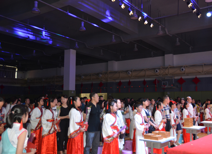 菁菁为明园,百花竞芬芳。2018年6月28日上午九时半,“为明星”艺体中心,鼓乐齐鸣,六年级全体师生身着汉服,周正庄重,雍容典雅,会场庄严肃穆。这是为明广州学校小学部六年级传统文化毕业典礼—— 一场仪式感、庄重感、荣誉感十足的“汉礼文化”盛宴。
