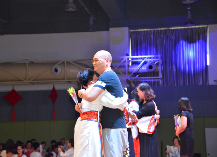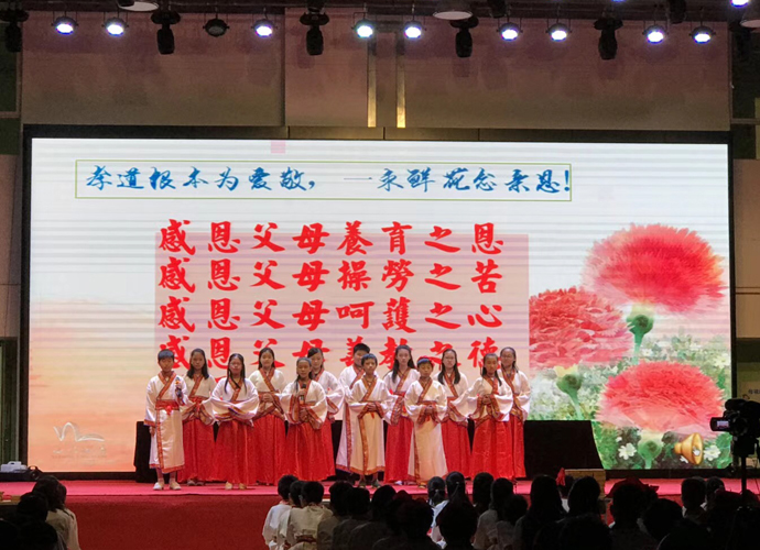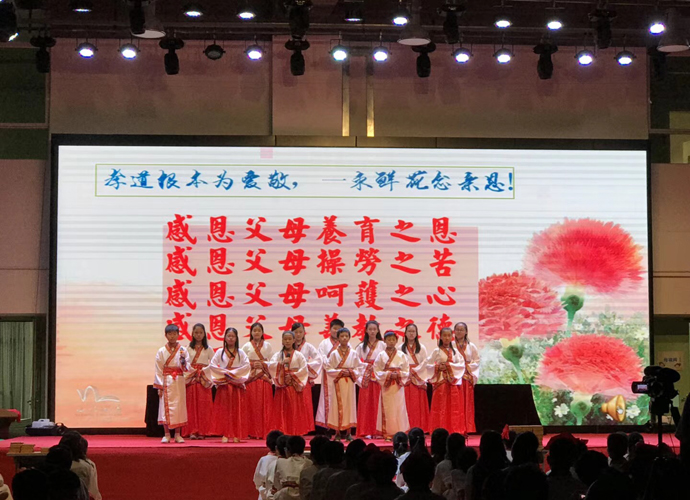 万爱千恩百苦,疼我孰知父母?父爱如山,母爱如海,山撑天地,海纳百川,感恩父母养育之恩。学子捧上鲜花心语卡,行五鞠之礼,显孝道之德。有家长默念心语,眼眶湿润;有家长怀抱鲜花,幸福言道:“孩子,我为你骄傲。祝福你做最好的自己……”孩子呢喃道:“在为明,快乐的童年,太短太短,我可否赖着不走……”低语,牵手,合影,拥抱,俏皮而笑,幸福得让人心暖无度。