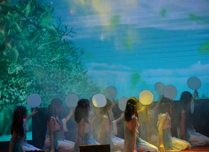 老师,让我给您跳支舞吧!女孩着一袭水墨襦裙翩跹起舞,衣裙飘逸,团扇翻飞。“娴静犹如花照水,旋动好比风抚柳。”舞蹈《雨中花》把为明女孩纯净、含蓄、轻盈、飘逸之美体现得淋漓尽致。