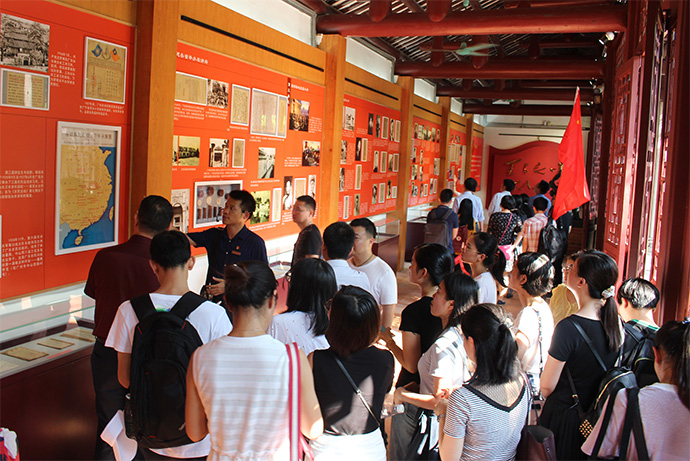广州农民运动讲习所纪念馆于1953年建立,原址为明代建造的番禺学宫,纪念馆由周恩来同志题写了“毛泽东同志主办农民运动讲习所旧址”牌匾,1961年被国务院公布为全国重点文物保护单位。走进农民运动讲习所,大家通过参观展馆的历史文物和图片资料,真切感受到老一辈无产阶级革命者的崇高情怀。