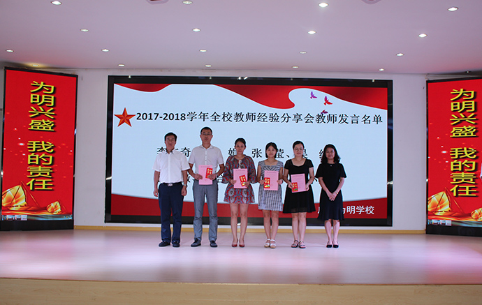 随后,于晓东副校长、龙旭校长助理为十六位本校发言教师颁发了“为明大讲堂”校本培训主讲教师讲课证书及课酬,并合影留念。