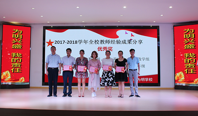根据全体与会教职工对教学专题、德育专题的团队优秀教研成果代表的发言投票情况,学校对上学期相应的所在级部/年级、教研组给予团队奖励。本次分享分设优秀奖8名、卓越奖8名。高中文综、初中理综、高中语文、小学英语、原高一级部、原初三元培级部、小学原四年级组、小学生活部获得“卓越奖”;高中数学、高中英语、初中数学、小学语文、原高二级部、初二元培级部、小学原二年级组、教科研心理组获得“优秀奖”。
