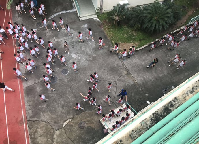 当日上午8点48分,“呜……呜……”急促的警报声拉开了防空演练的帷幕。各路口引导老师以最快的速度到达岗位,在楼道口协助学生安全疏散,班主任及当堂任课老师组织学生快速、安全地疏散到操场的“安全地带”。随即各班清点人数,并层层上报。为确保本次活动的顺利进行,学部制定了科学合理的实施方案,开展了专题会议,熟悉逃生路线,责任到人,短短几分钟全体学生在老师的指引下安全、有序、高效地疏散到指定位置,圆满地完成了此次紧急逃生疏散的演练任务。
