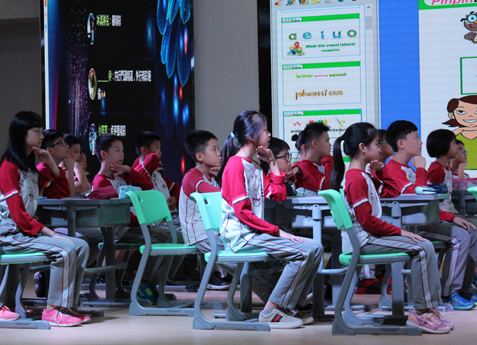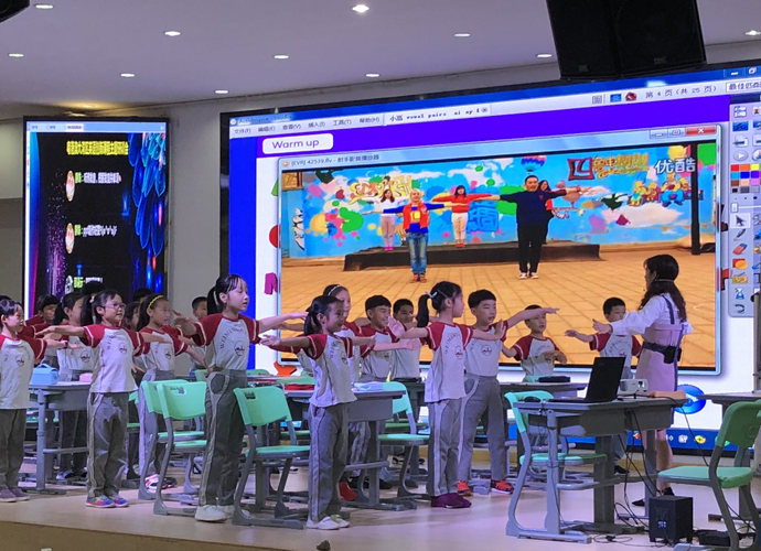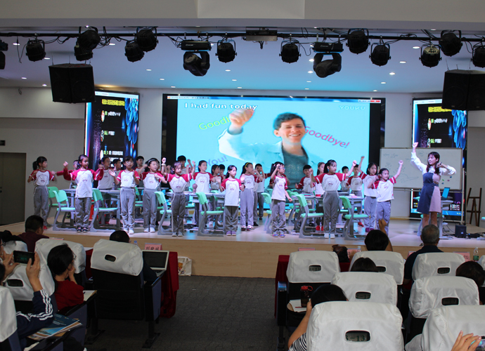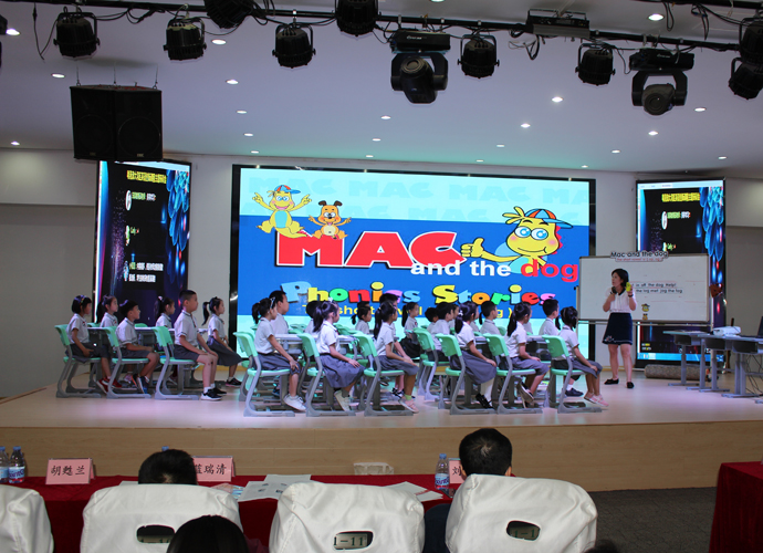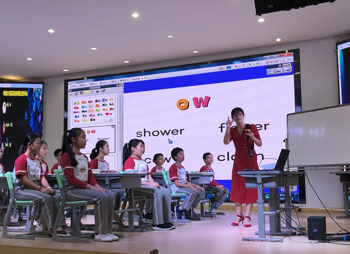 我校作为开展了多年自然拼读教学实践的代表也参与了本次课例活动。胡甦兰老师带来的短音“o” 的教学赢得了与会专家和老师的一致好评。课堂气氛活跃,教学设计环环相扣,教学形式丰富多样,老师激情澎湃,学生热情高涨,课堂互动生动有效,博得了听课老师的阵阵掌声。我校师生研究实践自然拼读教学已经有6年多时间,学生们的拼读能力较强,因此所有参与课堂教学的学生都引来参会教师们的交口称赞,为我校学生的高水平点赞。