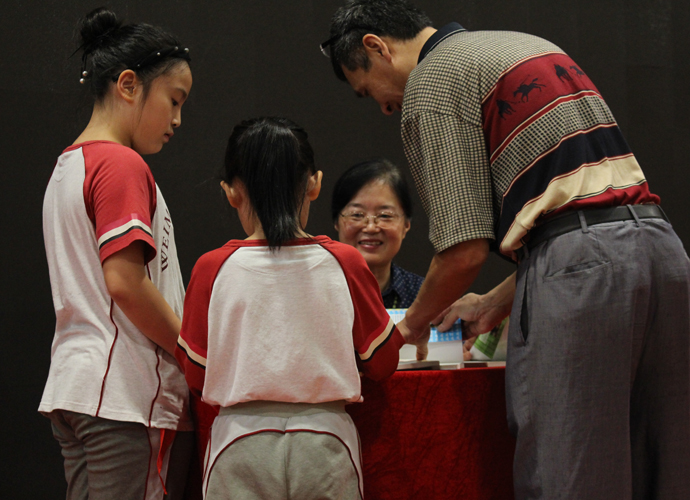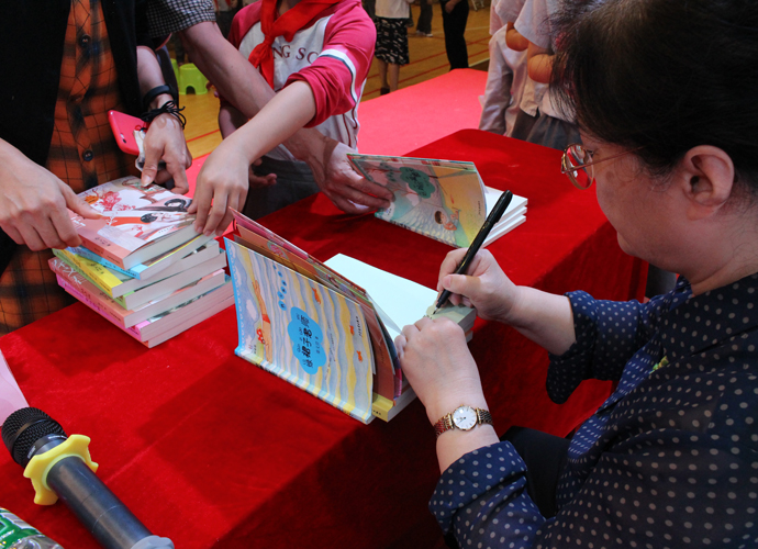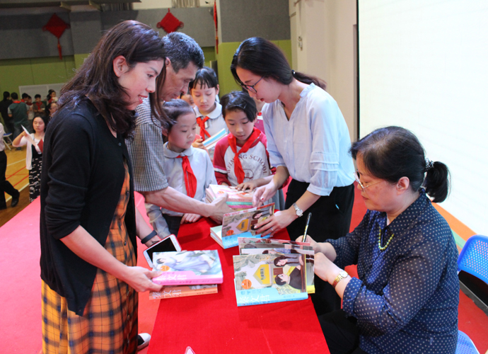 在最后进行的签名留念环节,孩子们手捧书籍有序地排队等待秦老师签名,气氛十分热烈。