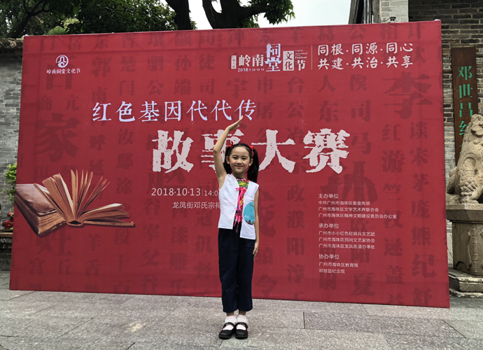 金秋十月,硕果累累。红色精神,永驻我心!我校小学部二年1班的曹越同学,在由海珠区关工委、海珠区教育局、海珠区教育系统关工委及海珠区少年宫联合主办的2018年海珠区“红色基因 代代相传”故事大赛中,在将近上百个参赛学校中脱颖而出,她以自己出色的舞台表现力,获得了一等奖的好成绩,获得了负责此次活动总评委老师的高度认可,这是我校践行特色教育的又一硕果!