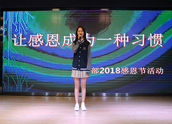 活动结束时外教Elona的评语,让全场响起了雷鸣般的掌声。 虽然今年的感恩节已经过去 ,但感恩不分时段。我们怎能忘却帮助过我们,给予我们爱与知识的人呢?让我们每个人都让感恩成为一种习惯。感恩父母,感恩社会,感恩我们生命中拥有的点点滴滴。