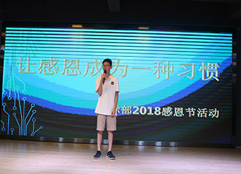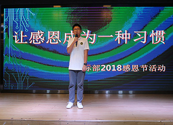 感恩节活动在主持人的宣布下进入了非同寻常的场面,一个个同学有说不完的心声向大家诉说。咱们不愧是国际部的学生,台上用流利的英语分享,那颗虔诚的感恩之心有了更宽更广的视野。