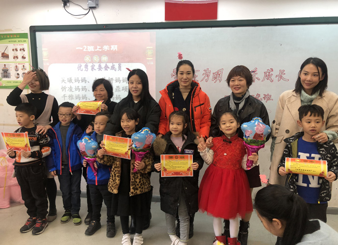 一2班何敏老师把教室环境布置得喜庆而温馨。他们的主题是“爱在为明,快乐成长”。首先回顾本学期班级情况,并邀请优秀孩子的家长分享宝贵育儿经验,为孩子颁发奖状,鼓励孩子不断进步,最后展望下学期的工作。活动气氛轻松活跃,是一次走心的散学礼。