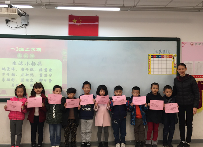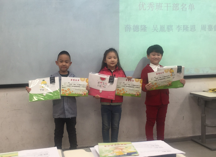 一(5)班许锦丽老师的宗旨就是让家长为孩子找到定位点。通过展示各项成绩让家长为孩子的进步感到幸福一点,让家长会的反响成功一点;通过PPT展示孩子生活、学习方方面面取得的各项成绩。大屏幕上一张张真实的照片:有本班可爱的同学做课间操的,有参加升旗仪式的,有上课专心听课的,有宿舍快乐生活的……让家长们直观地了解到了孩子在校学习、生活的情景。尽力挖掘每位同学身上闪光之处,表彰班内评选出的最负责的班干部、为班级做事最多的同学、最乐于助人的同学,让家长们看到了自己的孩子在这里健康地成长,不断地进步。最后孩子们自发的节目把散学礼推向了高潮。