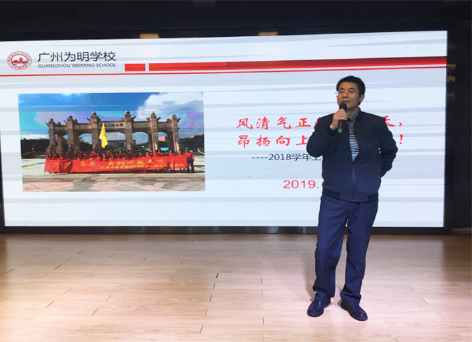 在期末统考中,于校表扬了各级各部取得的优异成绩,特别是高三在本次广州市调研考中,重本人数、二本上线率均超越2018届同期成绩。初中各个级部统考成绩均创历史新高,高一、高二统考也是亮点纷呈。