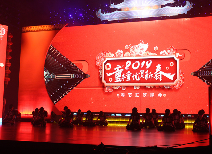由广东广播电视台现代教育频道主办、童年童悦艺术团承办的“童年童悦贺新春—2019年春节联欢晚会,经过几千名演职人员的紧张筹备,精心剪辑,共同制作的这一道佳肴,大年三十晚上八点正式播出,为明学在舞台上充满活力,炫酷无限。