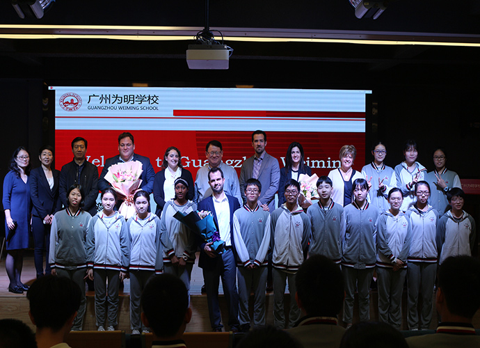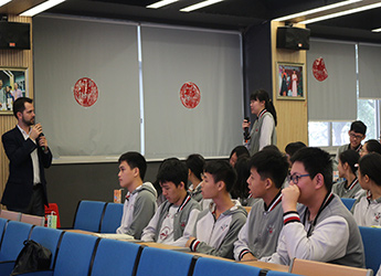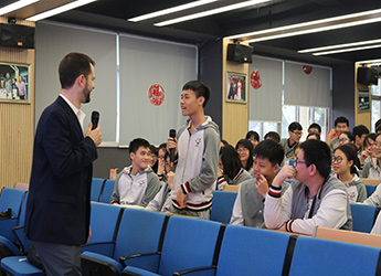 美国高中校长进校园第一站,与为明高中部学生面对面,点亮学生的科技探索之路。