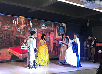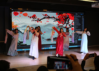 用服饰展现独特的中国韵味,用戏剧打开中美文化交流窗口。为了迎接美国校长团的到访,国际部学子精心准备了一场艺术演出,为远道而来的客人献上了视听盛宴。英文歌曲串烧、现代舞蹈表演、悠扬的钢琴独奏、经典英文剧目《美女与野兽》,还有体现中国几千年礼乐文明的华夏衣冠“汉服秀”,美国客人们看的惊喜连连。